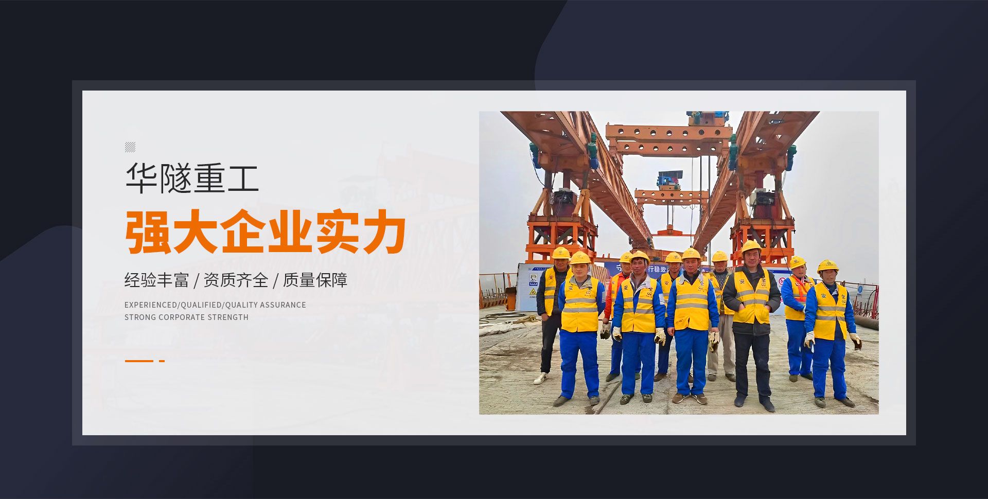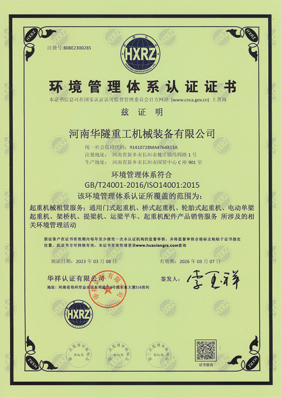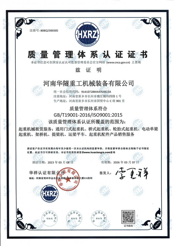 河南華隧重工機械裝備有限公司主要從事通用門式起重機、橋式起重機、電動單梁起重機,輪胎式起重機、架橋機、提梁機、遠梁平車、鋼絲繩電動萌蘆、卷揚機、起重配件制造、銷售:起重機械租賃、安裝和維修,起重設備園收,機械設備維修,鋼結構工程承包,橋梁工程及技術咨淘服務,銷售五金制品、機電設備:建設工程監理,建設工程設計,各類工程建設活動,建筑勞務分包,建筑物折除作業,施工作業,工程管理服務,土石方工程施工,裝如發運?! 」疽淹ㄟ^IS0國際質量、環境、健康與安全三合一標準認證,特種設備制造許可證和特種設備安裝改造維修許可證。擁有完熟的質量管理體系。嚴格的管理制度,強大的生產能力和先進的檢測手段,在保證產品質量的同時,也具備了極強的市場競爭力?! 」緢猿挚萍紕撔聻槔砟?,產品質量為核心,注重信譽,建立了減信可靠、快捷、思速。便利周到的售后服務網絡。  我們擁有的技術專家和技術服務隊伍為客戶提供充善的售前技術支持和全天候的售后服務體系,讓您無后顧之憂,享受一站式的超值服務?!  叭A隧重工,伴您成功“是華隧重工永遠的宗指,真被的希望與各界朋友攜手并進。共創輝準!